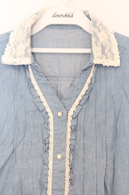 axes femme / 後ろ編み上げレースデニムシャツ M ブルー O-26-03-01-047-AX-BL-OW-OS [2100080000071971-O-26-03-01-047-AX-BL-OW-OS]