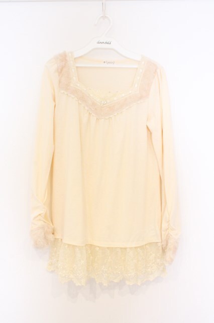 axes femme / ファーカラーインナーカットソー M キナリ O-26-03-01-030-AX-TO-OW-OS