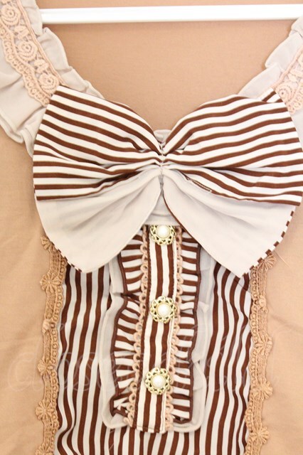 axes femme / ストライプ切り替えブラウス風カットソー M ブラウン系 O-26-03-01-037-AX-TO-OW-OS [2100080000071961-O-26-03-01-037-AX-TO-OW-OS]