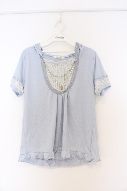 axes femme / ネックレス付きヨーク切り替えパーカー M サックス O-26-03-01-042-AX-TO-OW-OS