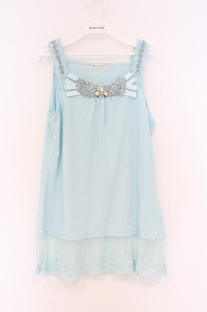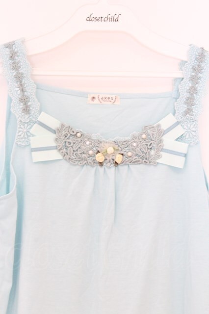 axes femme / 胸元&肩デザインロングタンク M ミントブルー O-26-03-01-026-AX-TO-OW-OS