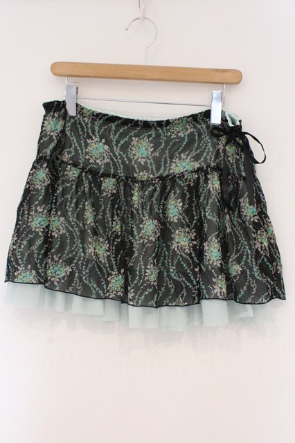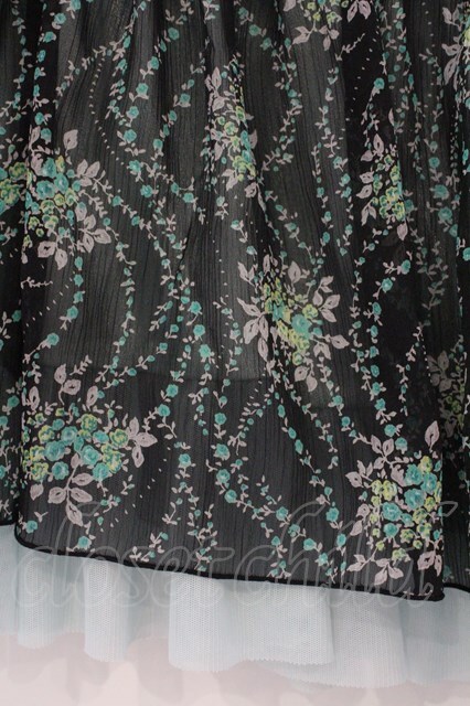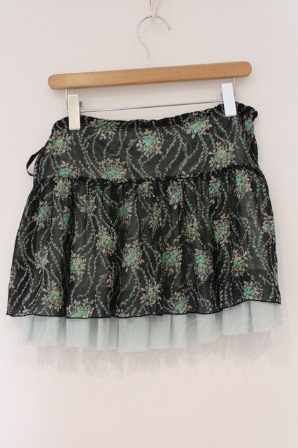 ALGONQUINS / リーフプリントシフォンスカート ブラック×グリーン O-26-03-01-106-AL-SK-IG-OS
