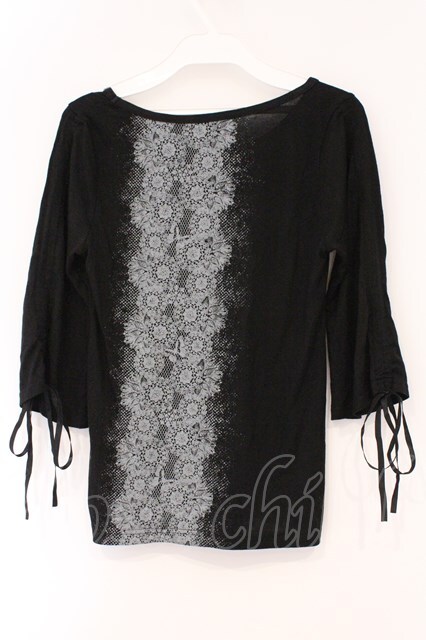 ALGONQUINS / レースプリントギャザースリーブTシャツ ブラック× O-26-03-01-122-AL-TS-IG-OS [2100080000075644-O-26-03-01-122-AL-TS-IG-OS]