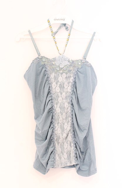 axes femme / スパンコール使いホルターキャミソール M ブルー O-26-03-01-033-AX-TO-OW-OS [2100080000071957-O-26-03-01-033-AX-TO-OW-OS]