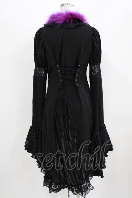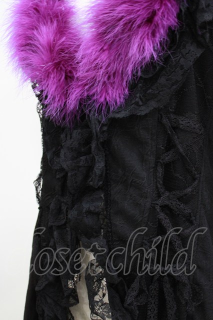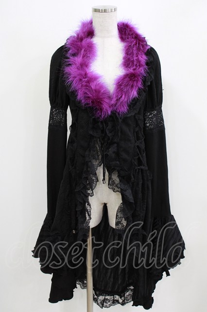 Qutie Frash / ファー付カーディガン 黒×紫 H-26-03-03-037-QU-TO-KB-ZH