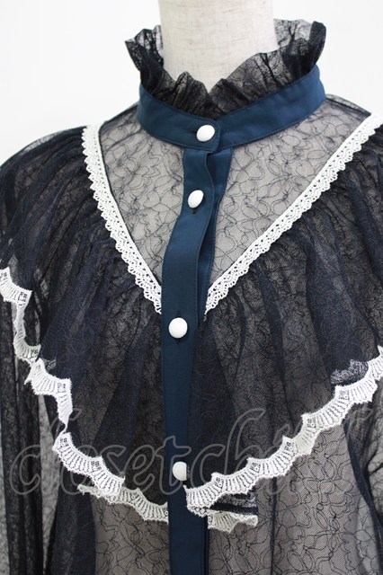 abilletage / レースフリルブラウス 紺 H-26-03-03-046-GO-BL-AK-ZH [2100030000088060-H-26-03-03-046-GO-BL-AK-ZH]