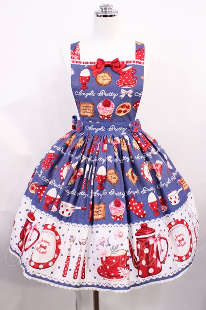 Angelic Pretty / French Cafeエプロン風スカート Free アオ H-26-03-03-1019-AP-SK-NS-ZH