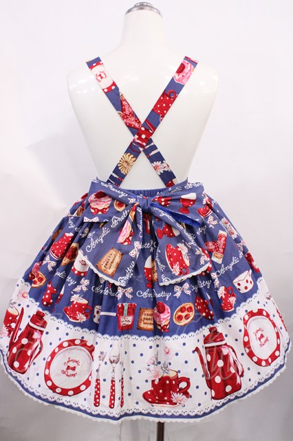 Angelic Pretty / French Cafeエプロン風スカート Free アオ H-26-03-03-1019-AP-SK-NS-ZH [2100030000072692-H-26-03-03-1019-AP-SK-NS-ZH]