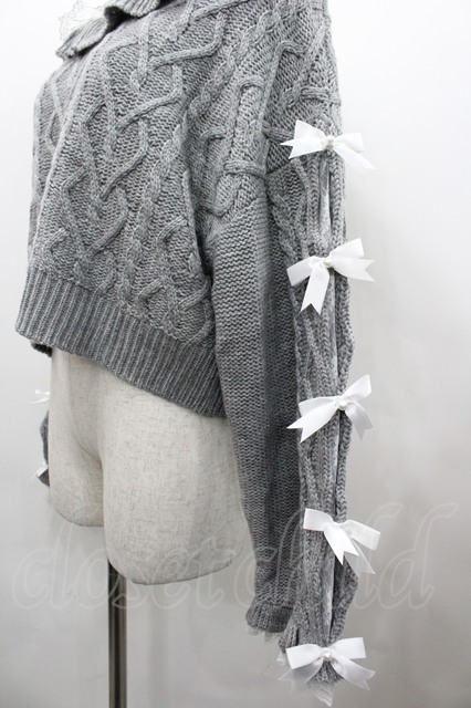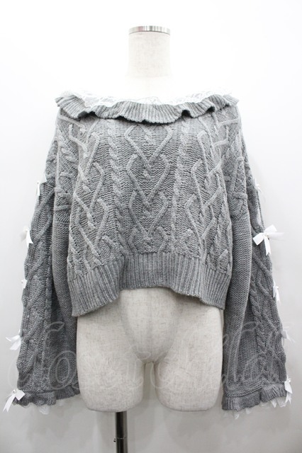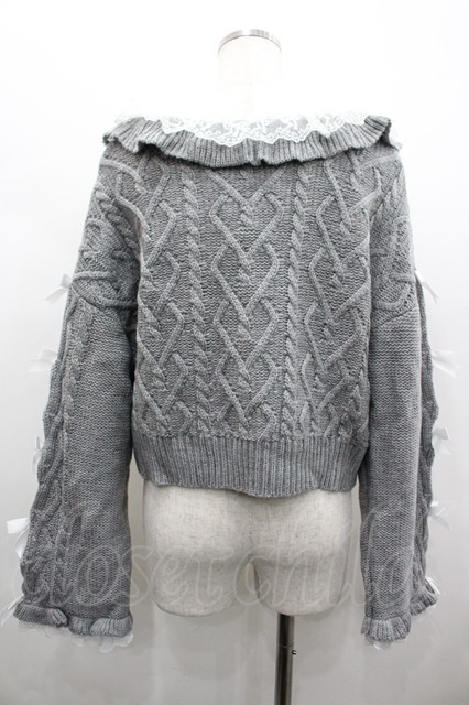Dear My Love / Vネックリボンレースビジューハートケーブルニット M-L グレー I-26-02-28-011-EL-TO-TE-ZI [2100060000050657-I-26-02-28-011-EL-TO-TE-ZI]