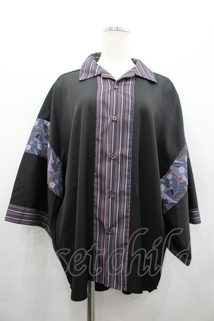 AXES-X / 和柄コラージュアロハシャツ M 黒 I-26-02-28-032-LO-BL-SA-ZI [2100060000050982-I-26-02-28-032-LO-BL-SA-ZI]