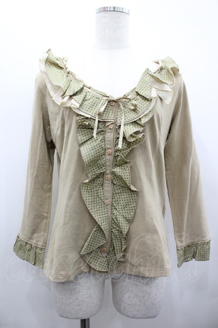 INGEBORG / ドットフリルカットカーディガン ベージュXグリーン I-26-02-28-052-LO-TO-SA-ZI [2100060000051551-I-26-02-28-052-LO-TO-SA-ZI]