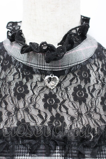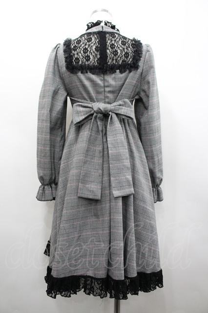Favorite / レース切り替えチェックハイネックワンピース グレーチェックX黒 I-26-02-28-084-LO-OP-SA-ZI [2100060000049015-I-26-02-28-084-LO-OP-SA-ZI]