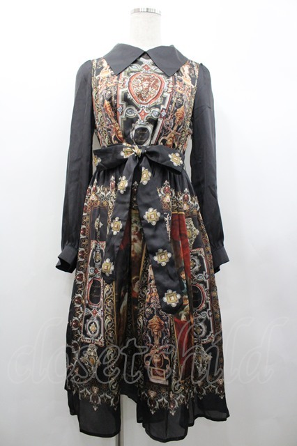 LOLITA / 絵画柄サテンワンピース 黒 I-26-02-28-087-LO-JA-SA-ZI [2100060000049770-I-26-02-28-087-LO-JA-SA-ZI]