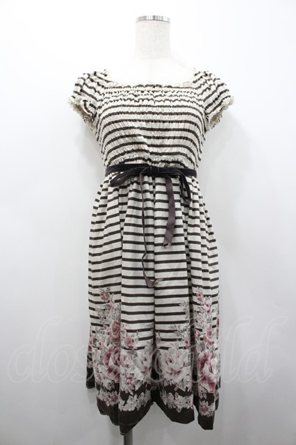 L`EST ROSE / ボーダーローズ半袖カットワンピース アイボリーXブラウン I-26-02-28-095-0-TO-SA-ZI