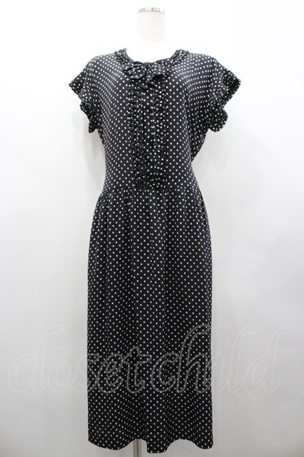PINK HOUSE / リボンドット半袖ワンピース 黒X白 I-26-02-28-097-LO-OP-SA-ZI [2100060000051208-I-26-02-28-097-LO-OP-SA-ZI]