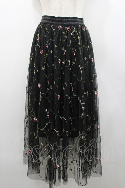 LOLITAその他(お買取対象外) / フラワー刺繍チュールスカート 黒 I-26-02-28-106-LO-SK-SA-ZI
