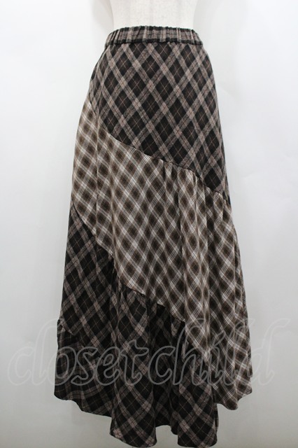 axes femme / チェック切替ロングスカート ブラウン I-26-02-28-108-AX-SK-SA-ZI [2100060000050590-I-26-02-28-108-AX-SK-SA-ZI]
