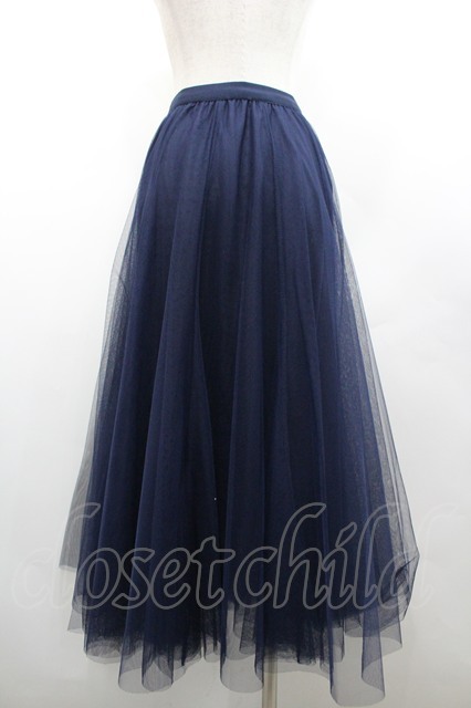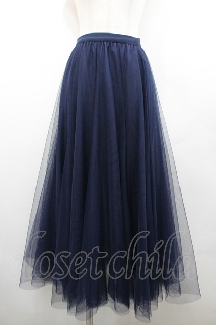 axes femme / ロングチュールスカート M ネイビー I-26-02-28-114-AX-SK-SA-ZI