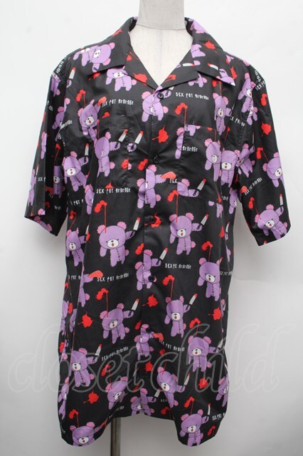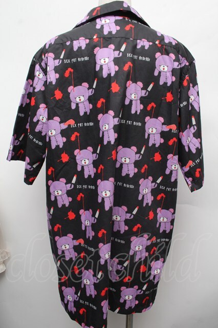 SEX POT ReVeNGe / くまpt半袖シャツ 黒x紫 S-26-02-28-036-SP-TO-HR-ZS