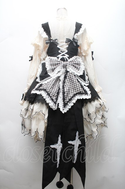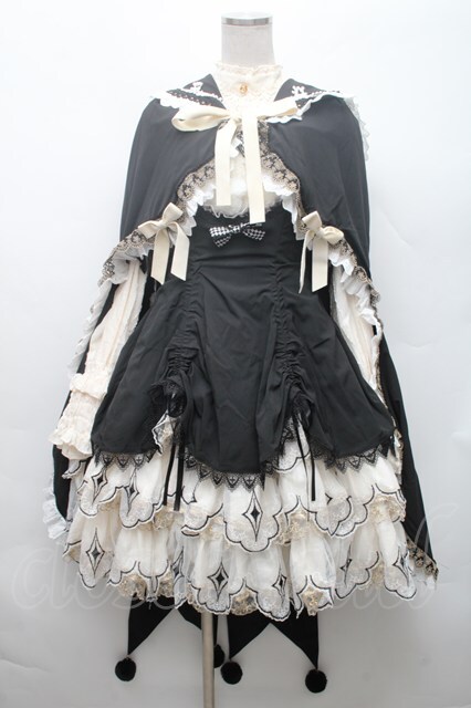 中国ロリータ / 裾レースシャーリングジャンパースカートセット 黒x白xキナリ S-26-02-28-044-LO-BL-HR-ZS [2100020000038341-S-26-02-28-044-LO-BL-HR-ZS]