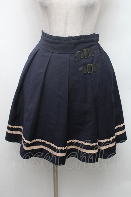 axes femme / サイドベルトプリーツスカート 紺 S-26-02-28-058-AX-SK-HR-ZS