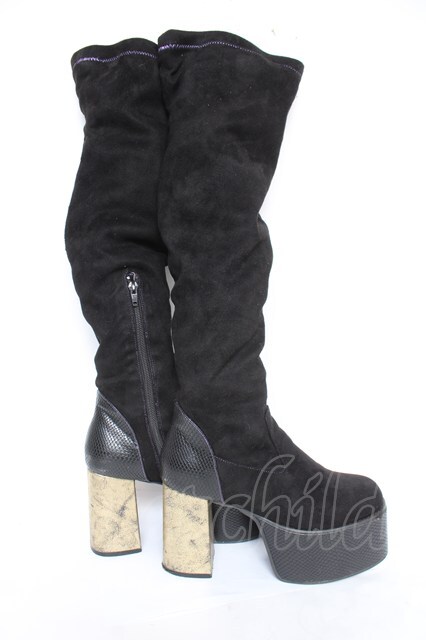 YOSUKE / ニーハイブーツ M 黒 Y-26-03-01-122-PU-SH-SZ-ZY