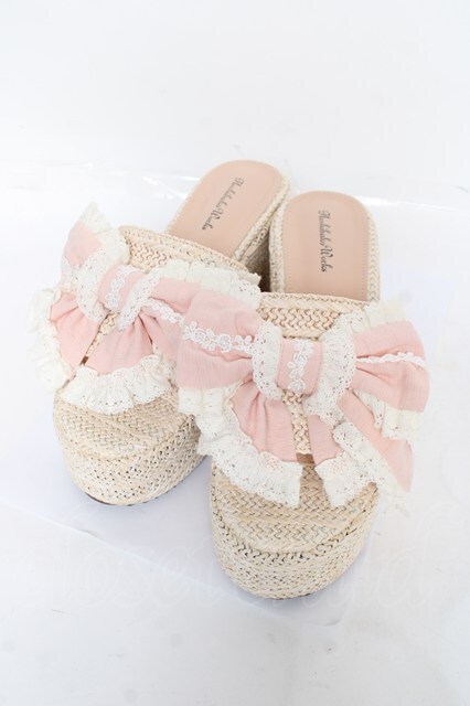 Hoshibako Works / お人形風シャンティクリームリボンウェッジソールサンダル L ピンク Y-26-03-01-124-LO-SH-SZ-ZY