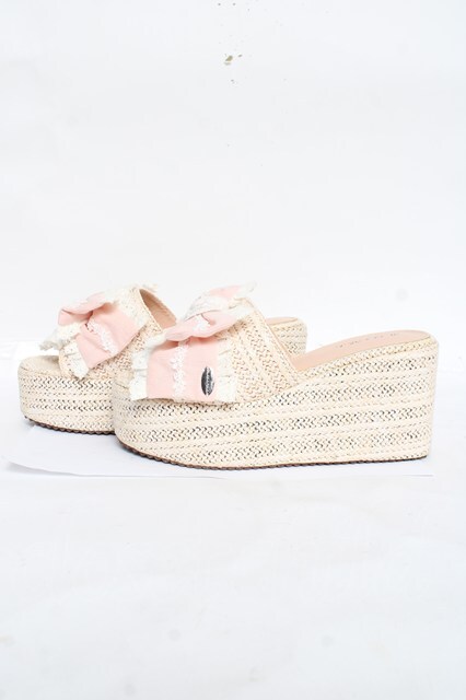 Hoshibako Works / お人形風シャンティクリームリボンウェッジソールサンダル L ピンク Y-26-03-01-124-LO-SH-SZ-ZY [2100070000063623-Y-26-03-01-124-LO-SH-SZ-ZY]