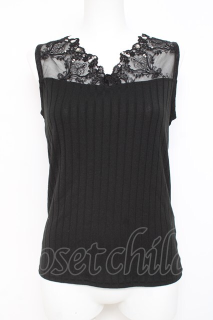 axes femme / 繊細レースタンク 黒 Y-26-03-01-140-AX-TO-SZ-ZY