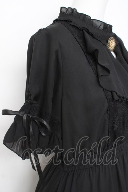 axes femme / カメオ付フレア袖ワンピース 黒 Y-26-03-01-161-AX-OP-SZ-ZY