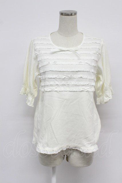 PINK HOUSE / リボンいっぱいフリル使いカットソー 白 T-26-03-07-006-LO-TO-SA-ZT [2100060000046447-T-26-03-07-006-LO-TO-SA-ZT]