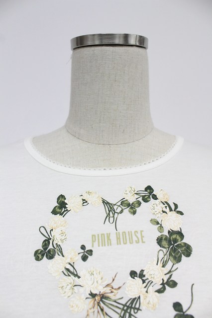 PINK HOUSE / White Cloverリース&sleeping rabbitプリントカットソー 白 T-26-03-07-009-LO-TO-SA-ZT