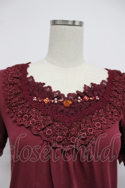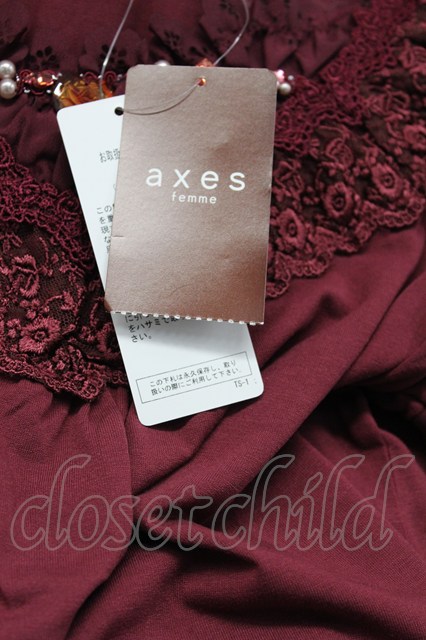 axes femme / デザイン袖半袖インナーPO M ワイン T-26-03-07-033-AX-TO-SA-ZT
