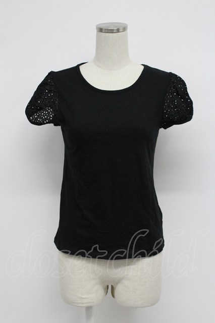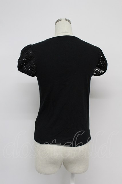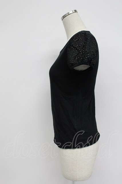 Jane Marple / レース半袖カットソー 黒 T-26-03-07-041-JM-TO-SA-ZT