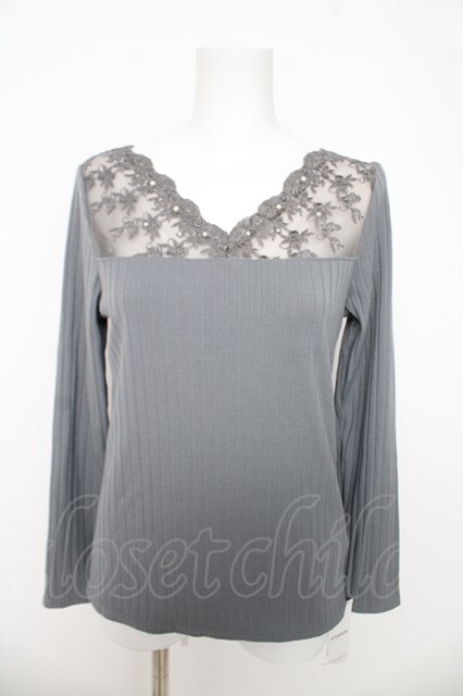 axes femme / 薔薇レースインナープルオーバー グレー Y-26-03-03-034-AX-TO-SZ-ZY