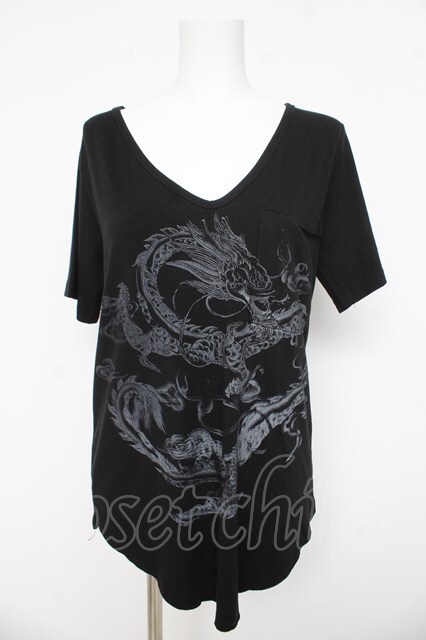 Ozz Croce / 龍プリントVネックトップス 黒 Y-26-03-03-077-OO-TO-SZ-ZY