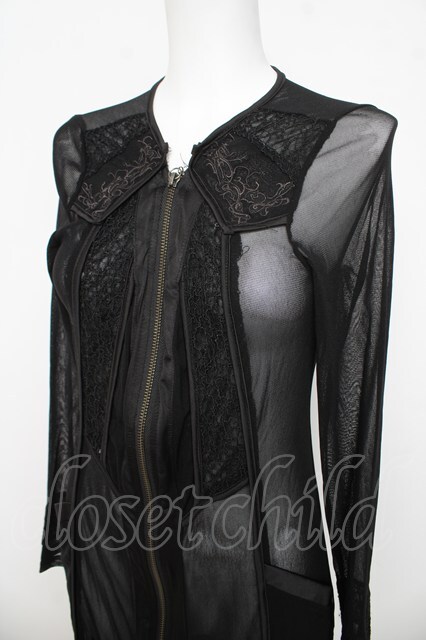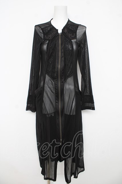 Ozz Croce / シースルーロングZIPカーディガン 黒 Y-26-03-03-102-OO-TO-SZ-ZY