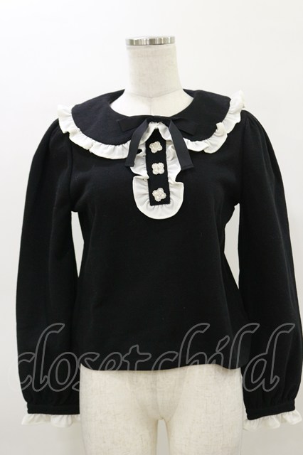 Ank Rouge / フロントビジュー配色フリル M ブラック/オフ H-26-03-05-1047-CA-TO-NS-ZH