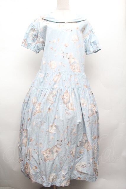 PINK HOUSE / さざ波とねこプリントミディワンピース サックス S-26-03-01-055-LO-OP-HR-ZS
