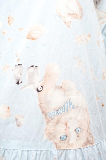 PINK HOUSE / さざ波とねこプリントミディワンピース サックス S-26-03-01-055-LO-OP-HR-ZS [2100020000038473-S-26-03-01-055-LO-OP-HR-ZS]