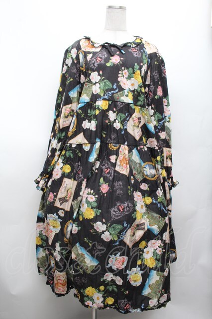 PINK HOUSE / ブーケモチーフプリントミディワンピース 黒 S-26-03-01-058-LO-OP-HR-ZS [2100020000038461-S-26-03-01-058-LO-OP-HR-ZS]