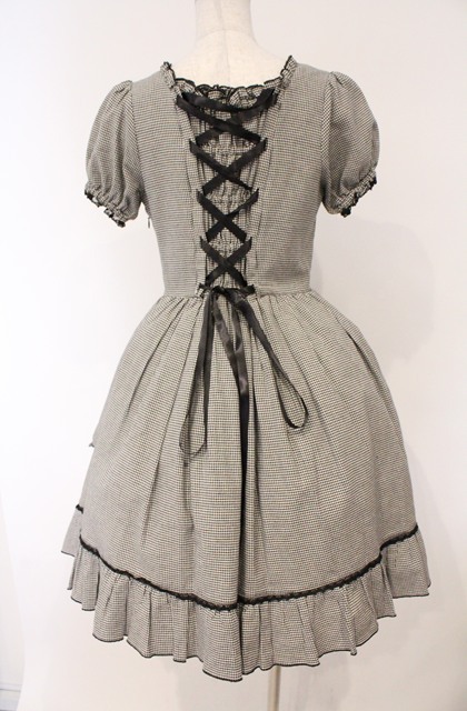 metamorphose / CL ロイヤルタータンリボンワンピース クロ×シロ O-26-03-02-015-ME-OP-IG-OS