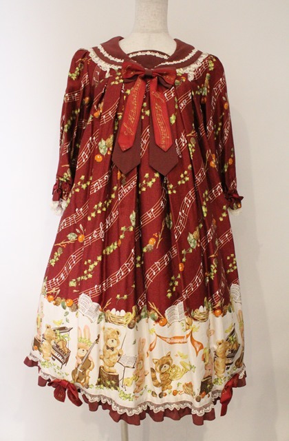 metamorphose / 森の音楽隊Aラインワンピース えんじ系 O-26-03-02-027-ME-OP-OW-OS