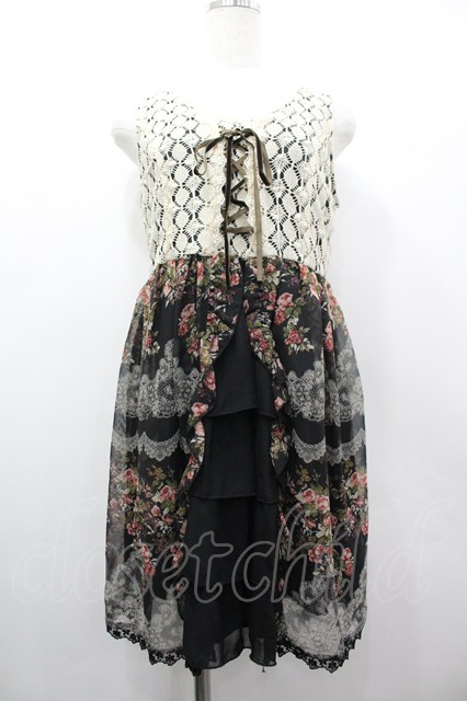 axes femme / レースX花柄スリットチュニ M 黒 I-26-03-02-037-AX-OP-TE-ZI