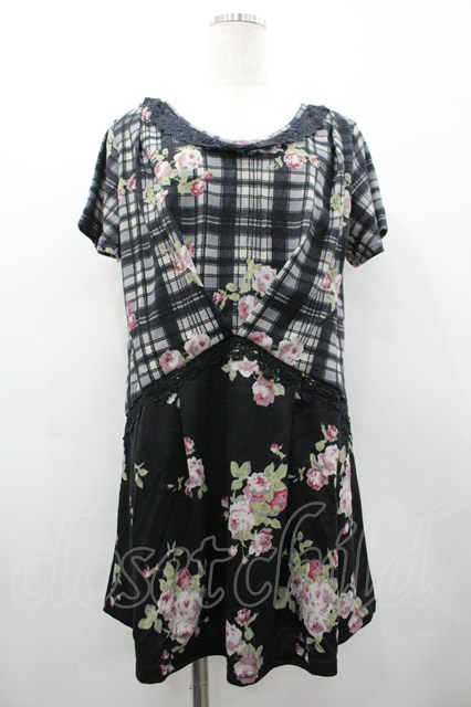 axes femme / チェック花柄タックチュニ M 黒 I-26-03-02-071-AX-TO-TE-ZI