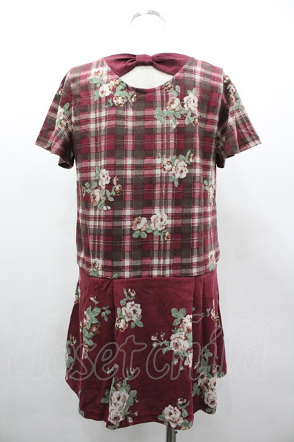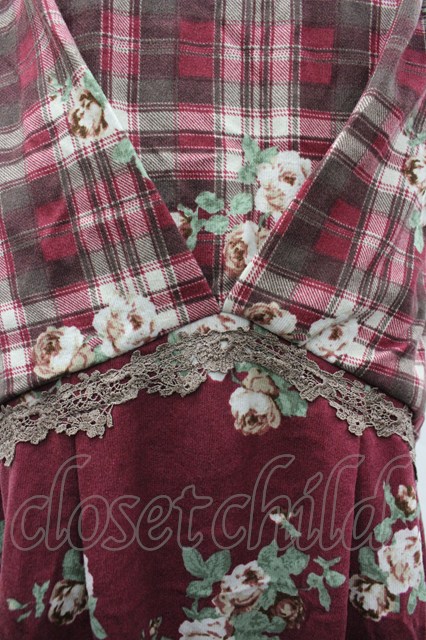 axes femme / チェック花柄タックチュニ M ワイン I-26-03-02-072-AX-TO-TE-ZI