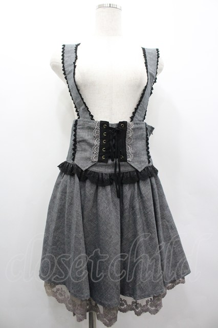 axes femme / サス付きハイウエストスカート グレーX黒 I-26-03-02-088-AX-SK-SA-ZI