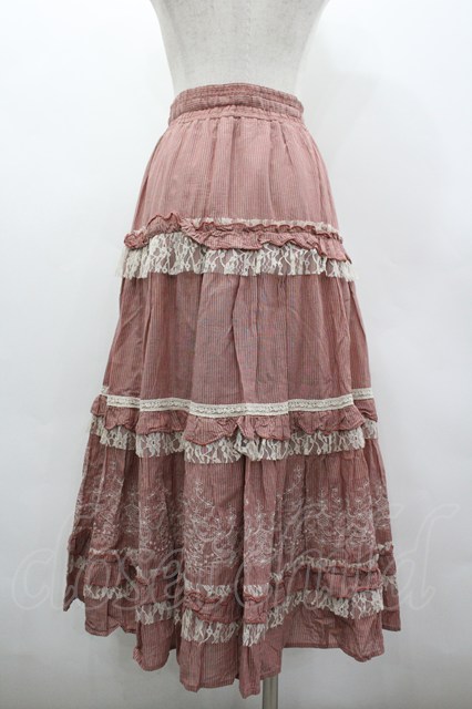 axes femme / 裾刺繍ストライプスカート M 赤×ブラウン I-26-03-02-090-AX-BL-TE-ZI