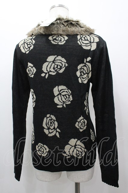 axes femme / バラ柄ファーティペット付きPO M 黒 I-26-03-02-003-AX-TO-TE-ZI