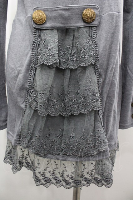 axes femme / リボンレースポケットカーディガン M グレー I-26-03-02-029-AX-TO-SA-ZI